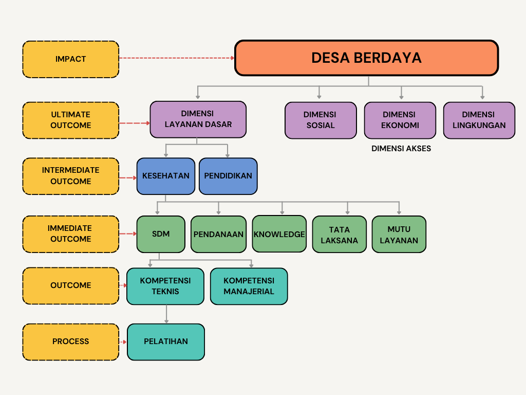 Sayangnya, banyak program mitra pembangunan saat ini baru menyentuh aspek teknis. Tanpa kerangka logis, ketimpangan ini sering tidak disadari. Selain itu, juga penting untuk memahami bahwa pada intervensi yang berada di level proses, perubahan paling realistis hanya sampai pada output—bukan langsung pada impact. Kesadaran inilah yang membantu semua pihak menetapkan ekspektasi yang masuk akal dan menghindari klaim berlebihan.